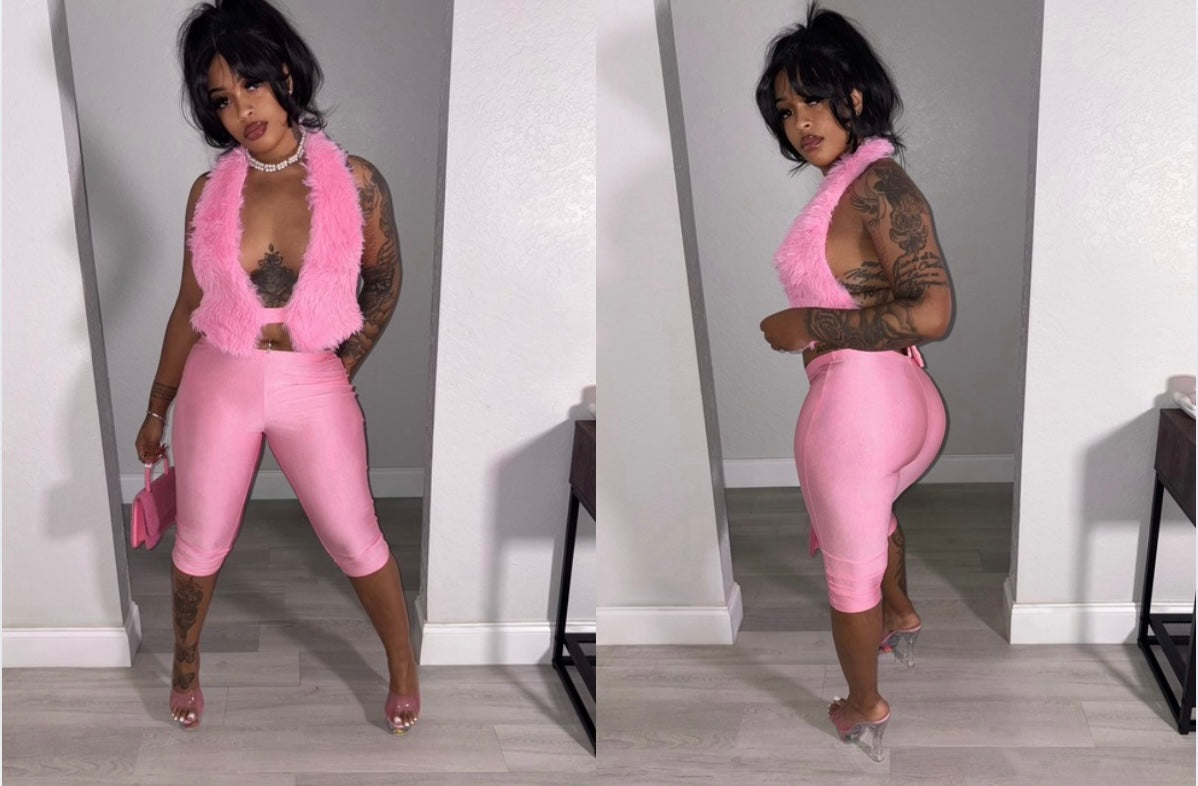 Fur Collar Jumpsuit With Leg Warmer